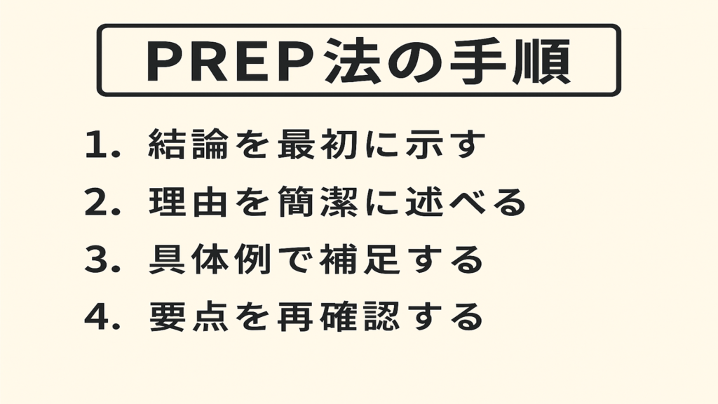 PREP法を意識すると結論から要点を伝えられ、説明も整理されます。